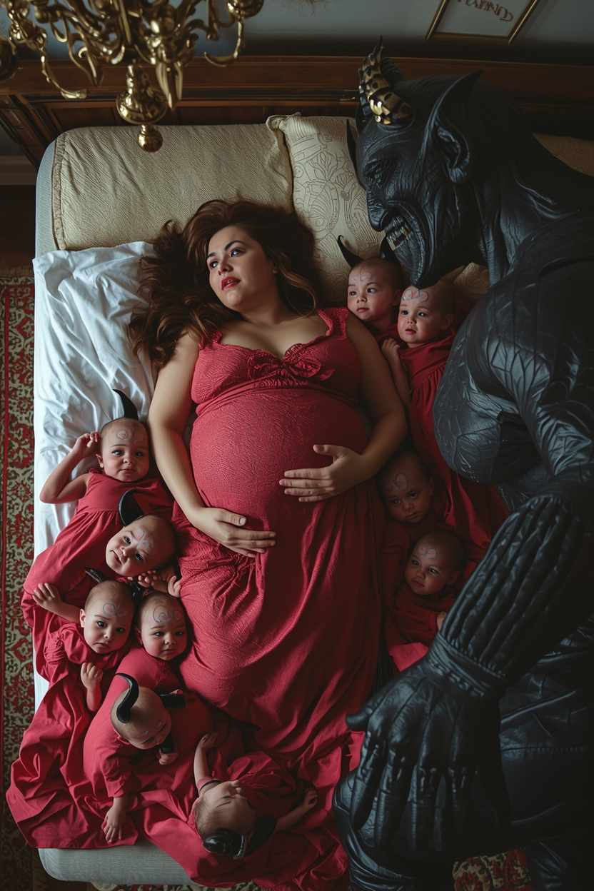 Demon and Diya with their first ten children's, after giving birth to ten children's, Demon again put another ten eggs on her womb for more children's, When Diya gave birth to them and when she popped her last tenth baby she was unconscious, the pain was so overbearing and unbearable for any human being that it could have died but now she is a half demon and half human after marrying demon he make her a demon human and so she can easily gave birth to his children's.